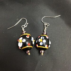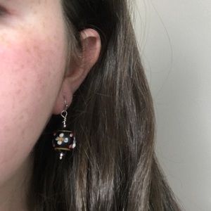 I made these earrings, the biggest one is glass. They are sliver. Clean and disinfected.