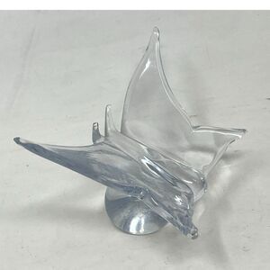 Handmade Glass Butterfly Paperweight In Flight Murano Style Clear Figurine