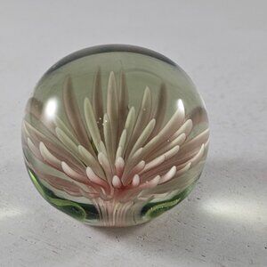 Handmade Glass Flower Paperweight Pink Clover Flower 1.75 Inch Diameter