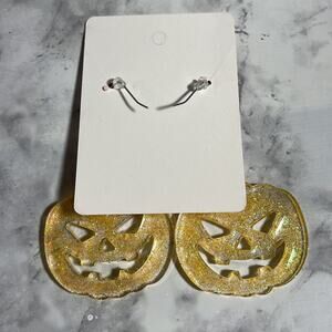 Handmade Glitter Jack-o-lantern Pumpkin Earrings