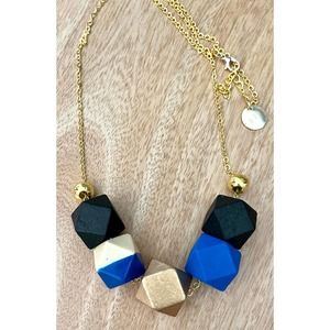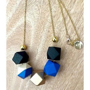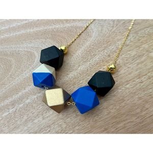 Handmade Gold Chain Wooden Beaded Modern Statement Necklace - The Noel