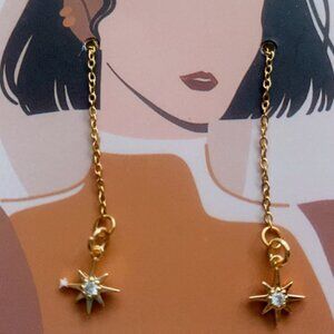 These dainty handmade North Star earrings are perfect for summer! The threader is made of stainless steel and the star is gold-plated brass with a tiny crystal in the center. The Threader is 90mm or 3.5 inches long. These earrings are easy to thread and you can barely feel them while wearing, a pair of clear rubber earring backs are included.