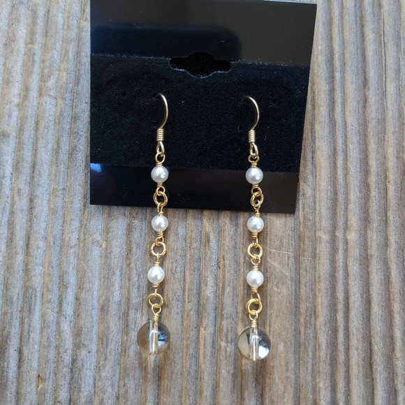 Unique: gold plated brass, swarovski pearls, swarovski crystals, fishhook backing