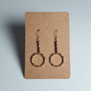 Handmade Gold Tone Bamboo Hoop Dangle Earrings Hooks for Women Boho Jewelry Gift