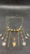 This is a handmade gold tone necklace with a fairly core faux pearl drop design.
