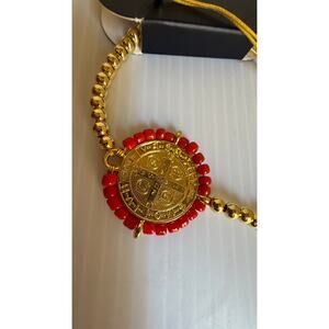 Handmade Brand new gold-plated San Benito beaded bracelet featuring a round medallion surrounded by red accent beads. Stylish, elegant, and versatile—perfect for everyday wear or as a special gift. Lightweight yet eye-catching, this bracelet adds a touch of classic charm to any look.