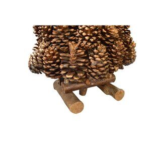 Enhance your holiday decor with this rustic handmade golden pinecone Christmas tree. Standing 24 inches tall, it features a wooden log base and metallic accents, perfect for any festive table setting.