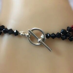 Handmade Goth Beaded Bracelet 7.5 Inch Black Red Glass Crystal Rondelle Beads