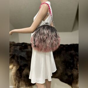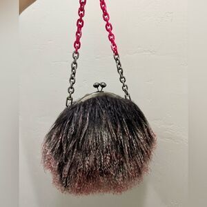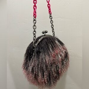 Only one available. This gorgeous bag is handmade from dyed genuine Mongolian lamb fur with round shaped metal frame. Large size. Spacious enough for your phones, wallet,cosmetics, compact umbrella, credit cards, keys & other items.