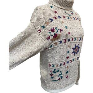 HandmadeSweater #FolkArt #CabinCore #CottageCore #GrandmaCore #Turtleneck #KnitSweater #CozyFashion #UniqueFashion #Artisan #WinterSweater #FallFashion #Embroidered #SizeSmall #SizeMedium