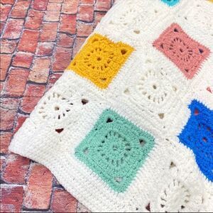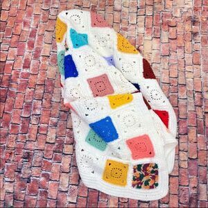 Handmade Granny Square Afghan Throw 52” x 52” White Multi