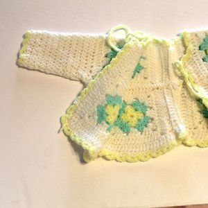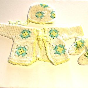 Handmade Granny Square Crochet Baby Doll Layette Set Mint Green Yellow O…