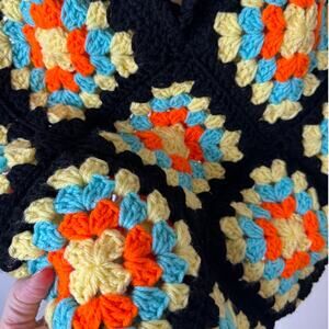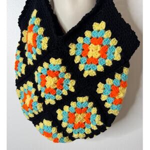 Handmade Granny Square Crochet Shoulder Bag Black Yellow Orange Retro Tote Y2K