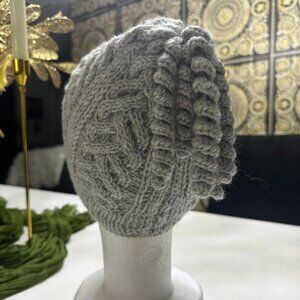 Handmade Gray Chunky Knit Hat with Braided Cable Pattern