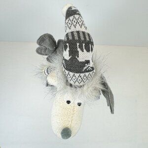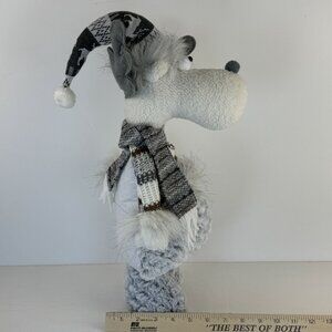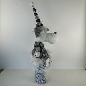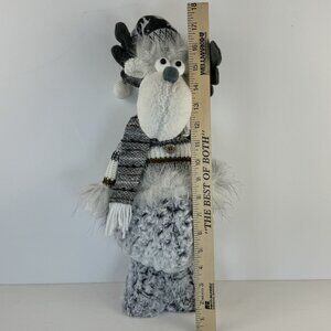 Handmade Gray Winter Moose Plush Decor Posable Hat Sweater Scarf Knit Hat 20"