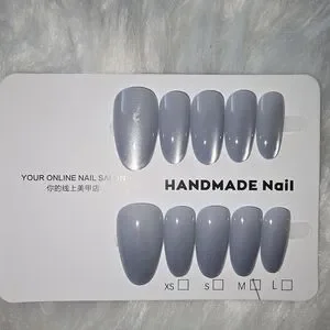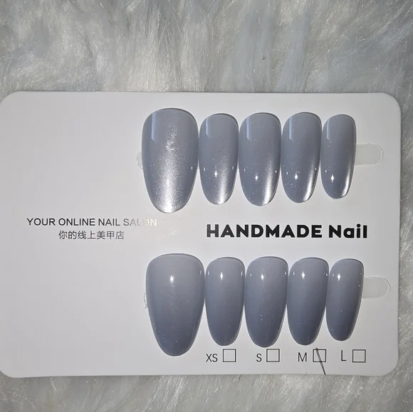 Elegant catseye handmade nail set in a sleek gray/blue shade. Perfect for any occasion.