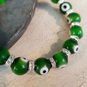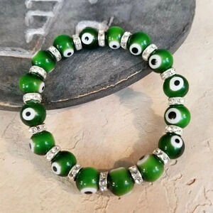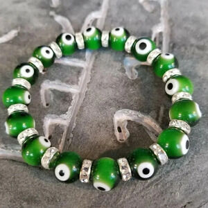 Handmade Green Black Turkish Evil Eye Glass Egyptian Crystal Talisman Bracelet