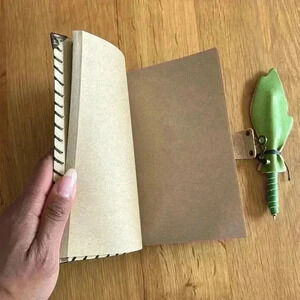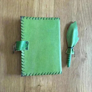 Handmade Green Leather Libra Sketchbook w/ Leather wrapped Pen