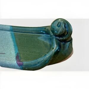 Hand-made Green multicolor pottery Olive Tray Trinket Dish ceramic signed 8x2