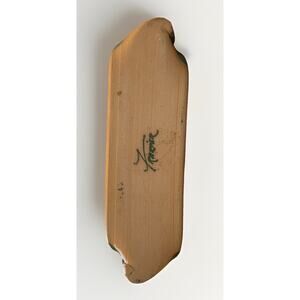This hand-made green multicolor pottery olive tray or trinket dish is a unique and artistic piece of ceramic from the United States. The all-over pattern, rectangular shape, and green colors make it a stylish addition to any home décor. Made from clay using traditional pottery techniques, this vintage piece is signed by the handmade brand, adding to its authenticity and charm. With a production style of art pottery, this olive tray showcases intricate details and a printed backstamp, making it a special and eye-catching item for serving or displaying trinkets.