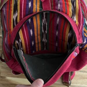 Handmade Guatemala Backpack Woven / Leather / Suede Pink Multicolor