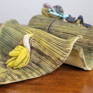 Hand made, carved, and painted baby Jesus with a tropical theme.