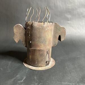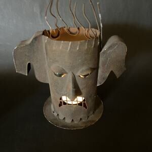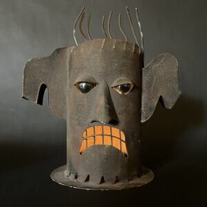 This handmade metal candle holder features a scary angry tree with expressive cutout eyes and a jagged mouth, crafted from durable sheet metal and standing 7″ tall. Perfect for Halloween mantels, gothic table settings, or haunted house vignettes, this piece blends spooky charm with artisan edge.
