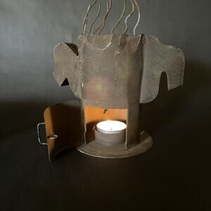 Designed to hold a standard tealight or votive candle, the tree's hollow body casts flickering shadows when lit, adding eerie ambiance to any space. Whether styled solo or grouped with other creepy characters, it’s a standout piece of seasonal welded art.