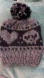 Handmade Hand Crafted Adult Knit Skull and Heart hat black gray and pink