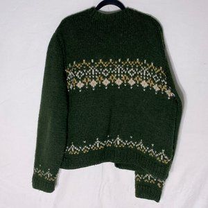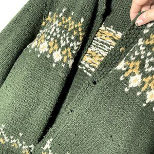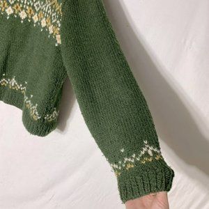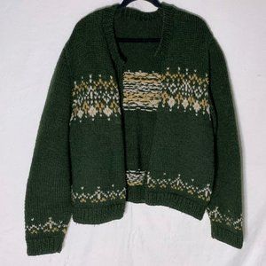 Handmade Hand Knit Green Yellow Open Front Cardigan XL