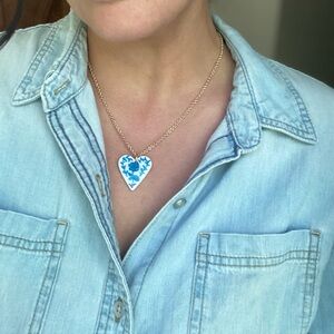 Handmade Hand painted Polymer Clay Heart Pendant Necklace