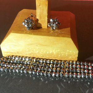 Stunning !!!!! Handmade Hand strung 3 Piece Statement Set made of crystal like beads... you will get the statement necklace with , matching bracelet and custom dangle earrings.....This set is a show stopper for that Ladies Sunday Brunch, or anytime you really want to own the room with your style....I have many more colors/ styles that I will list soon .... I CALL THIS SET "50 SHADES OF GREY" .. JUST SAYIN' BUSINESS DRESS UP SOME JEANS AND MATCHING GREY PUMPS ... OH MY.....THANKS FOR VISITING