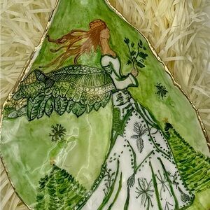 Handmade Hand-Painted Oyster Shell – Celtic Forest Maiden Art