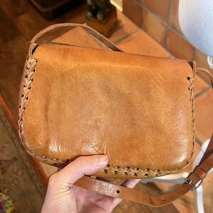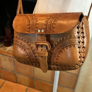 Handmade Hand-Tooled Embossed Tan/Brown Leather Crossbody Bag