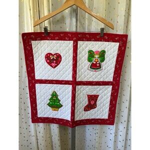 Handmade Handcrafted Quilted Applique Christmas Wall Hanging Table Topper