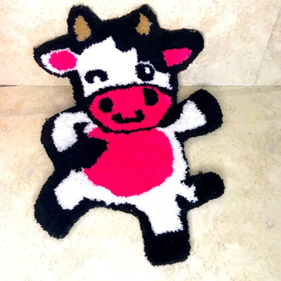 Very adorable Cow Rug! 😍 Made by me, Handtufted with acrylic yarn and the back is covered in felt.