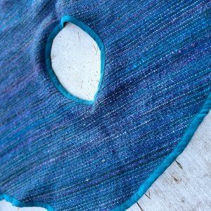 Blue/Purple/Turquoise wool (I believe it's 100% but cannot prove the exact composition, could be some synthetic)