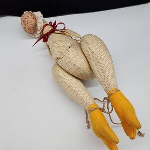 This quirky stuffed chicken is having a great time hanging around, literally. With its floral apron and red bows, it's the talk of the coop or your kitchen. A delightful addition to your decor that will have guests clucking with laughter.