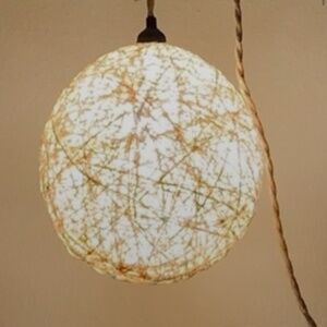 Absolutely Beautiful handmade hanging globe lamps made out of twine and hemp twine and twine glue, and also has light fixture and plug. They are absolutely beautiful! You can ask for just about every color. Just message me your color choice or choices