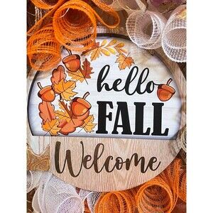 Handmade Hello Fall Welcome Door Wreath Acorn Leaf 22 in LED Thanksgiving W12