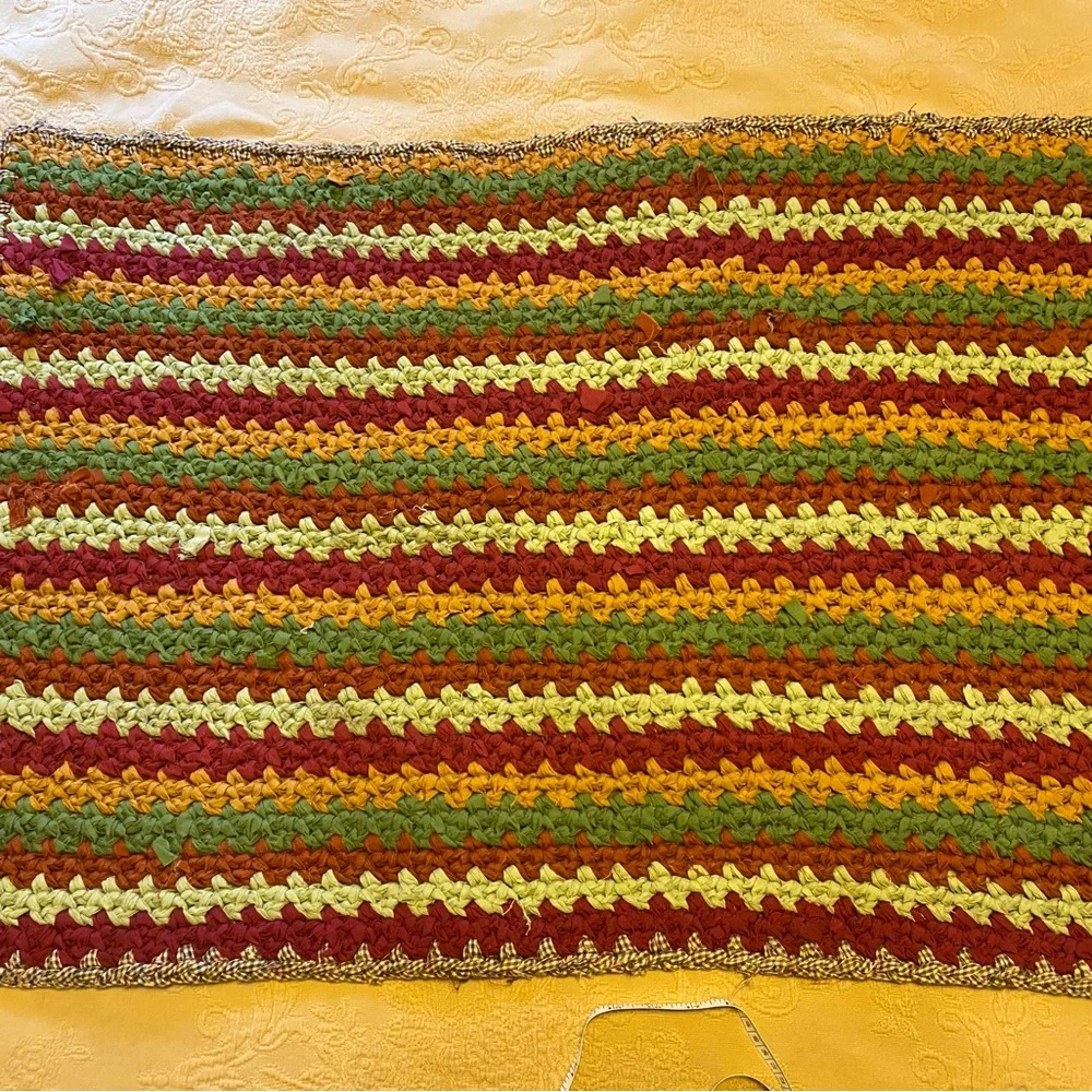 BEAUTIFUL, handmade in Vermont, rag rug accent mat that is very country/primitive in style and the colors are showing true when you zoom in on them. It is beautifully made and has only been used for a very short amount of time. Like New Condition, fairly heavy weight. Measurements are in the photos♥️