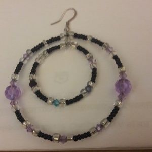 One of a kind, double black hoops with clear accents and lavender crystal faceted stones on outer hoops. All placed on sturdy wires by San Fernando artist. You won't see yourself coming and going.