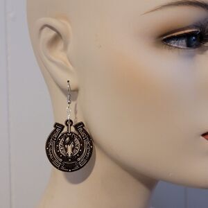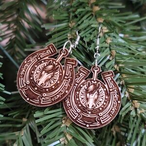 These handmade dangle earrings feature a beautifully detailed horse head framed within a horseshoe design. Lightweight and full of western charm, they’re perfect for rodeo events, equestrian enthusiasts, country concerts, or anyone who loves rustic boho style.