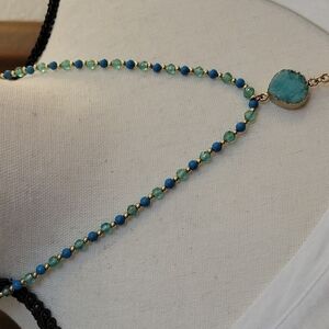 Handmade Howlite Beaded Rhinestone Peacock Feather Pendant Castlecore Necklace