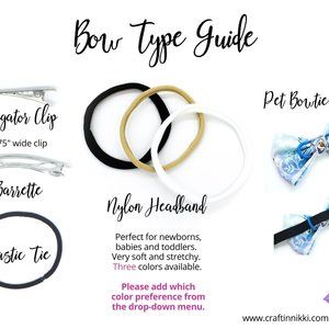 ๐ Handmade, (6) Options when ordering: alligator clip, soft nylon headband, french barrette, elastic tie, badge reel, straw topper, and pet bowtie.