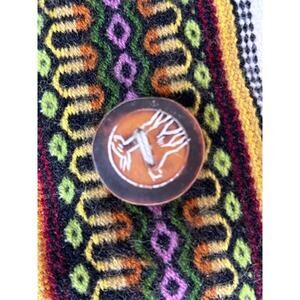 Handwoven sheep's wool Hualhuas tote bags are fabulous handcrafts. This beautiful southwestern style woven tote bag is a traditional Native American style shoulder bag created by the famous Hualhuas weavers. Woven by hand on traditional looms, this tote has matching front and back panels as well as a matching strap and flap cover. The closure is a hand carved gourd button with what might be an alpaca. The village of Hualhuas is located in the central Andes of Peru. The native people are the artisans who create these amazing totes, using them as carry bags and purses. 100% Sheep Wool. Measures approximately 14" long x 12" wide. Shoulder strap opening length is 14"