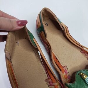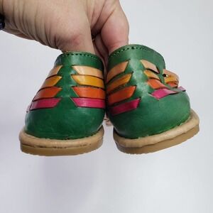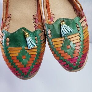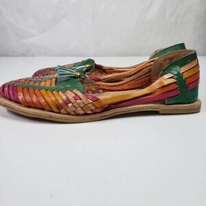 Handmade Huarache Sandals Women's 7 Green Rainbow Leather Woven Slip On