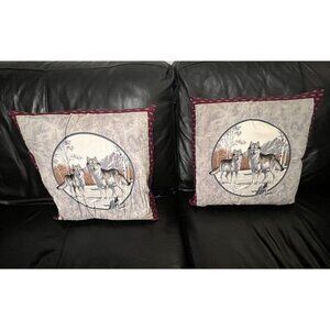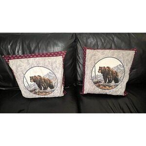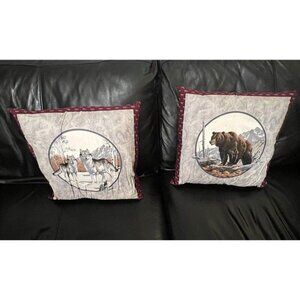 Handmade - Hudson Scene - Set of 2 Double Sided Bear & Wolf Throw Pillow
