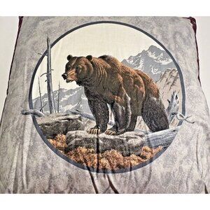 Handmade Hudson Scene 2 Bear Wolf Throw Pillow 15" Square Cabin Woodsy Mountains