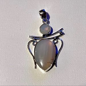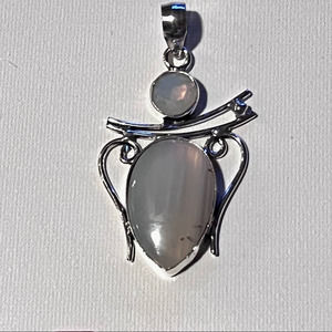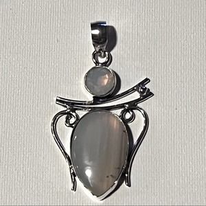 Hand carved and made in India. Rainbow Moon Stone pendant for necklace. Tibetan silver. New